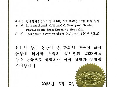 2024.02.21Graduation Ceremony in February 2024 The Northeast Asian Graduate School of Logistics is delighted to announce the upcoming graduation ceremony for master's and doctoral graduates in February 2024. We extend a warm invitation to all graduates, current students, alumni, and family members to join us in celebrating this momentous occasion. Graduation Ceremony Date: February 16, 2024 (Friday) at 10:00 AMEvent Location: Conference Room on the 3rd Floor of the Faculty Center, Building 2 (adjacent to Sangchai Chinese Restaurant)Receiving Graduation Uniform: Please proceed to Room 104 of Building 14 to don your graduation uniform before arriving at the Faculty Center by 9:50 AM.Note: Representatives of doctoral and master's graduates are expected to attend the Incheon National University’s graduation ceremony after joining the Graduate School of Logistics’ ceremony, which will commence at 11:00 AM in the Performance Hall of Building 23. Distribution of Diplomas: Distribution Period: February 16, 2024 (Friday) to March 9, 2024 (Saturday)Distribution Location: Northeast Asia Graduate School of Logistics Academic Administration Office (Room 409, Building 14)Please be aware that a degree certificate (diploma) differs from a master’s or doctoral degree certificate (graduation certificate). The degree certificate is issued only once and does not serve as official certification. If you require verification for submission to another institution, you may obtain a degree award certificate (graduation certificate) through one of the following methods starting at 10:00 AM on February 16th: 1. Via the Northeast Asia Graduate School of Logistics website (fee required) 2. A nearby Civil Service Center (fee required) 3. Using the automatic issuance machine located on the 1st floor of Buildings 1 and 11 on campus (free of charge)