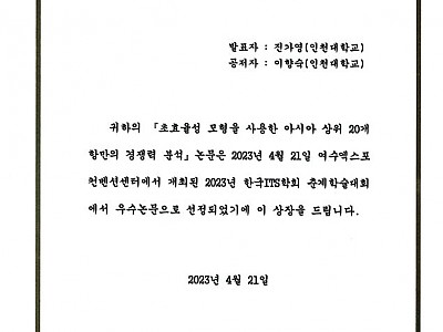 2024.03.01It is our great pleasure to announce that the Graduate School of Logistics, Incheon National University has opened a renewed seminar room called ‘Incheon Airport Logistics Seminar Room’ thanks to the donation of the Incheon International Airport Corporation.The seminar room has a large electronic board, online conference equipment, and a seminar table with an outlet for each seat. This seminar room will be used for lectures, special lectures, seminars, and workshops during weekdays and Saturdays. The seminar room will also be open to students as a study space all around the year. The Graduate School of Logistics in coordination with the Smart Logistics Engineering Department under the International Trade and Logistics Faculty, plans to renew advanced educational facilities using the sponsorship of Incheon International Airport Corporation, the University Specialization Fund, and a New Department Project Fund.Please look forward to 2024!