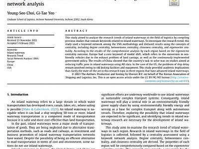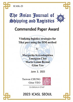 2025.09.08(사)한국로지스틱스학회 우수 논문상 논문명 : 컨테이너 부두 하역장비의 배출량 영향요인 분석 및 배출 원단위 산정모델 개발 저 자 : 이지원, 안용성, 이향숙