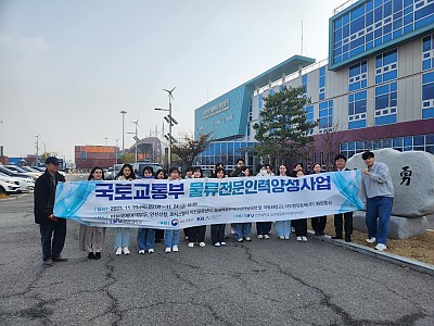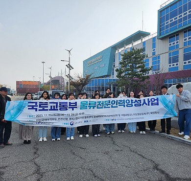 2023.12.01[국토부 인력양성사업단] 2023년도 국내 물류시설 현장 견학 물류현장을 직접 체험함으로써 학내에서 경험하는 간접적 지식과 현장에서의 직접적 경험을 연결하여 입체적인 학습을 도모하고 물류센터 내 장동화설비 및 장비에 대한 국내 R&D 현황 및 운영 현황을 파악하고자 국내 물류시설 현장견학을 다녀왔습니다. 1. 일 시 : 2023. 11. 23.(목) ~ 11. 24.(금) (1박2일)2. 견학장소 : 인천국제여객부두, 인천신항, 로지스밸리 이천물류센터, 동해자유무역(수산가공공장 및 자동화창고) <선광 컨테이너 터미널><선광컨테이너 터미널><이도밸류 물류 현장 시설><화인통상 물류시설>
