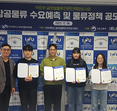 2024.11.04『국토부 글로벌물류인력양성사업단』항공물류 수요예측 및 물류정책 공모전 수상결과 글로벌물류인력양성사업에 참여하는 물류학연계전공 및 물류대학원생으로 대상으로 항공물류 수요예측 및 물류정책 공모전 실시 ❍ 공모주제 - 물류 현장에서 일어나는 데이터를 활용한 수요예측 및 물류정책 아이디어❍ 문제: 총 두 문제 중 한 문제를 풀이하여 제출 1, 인천공항으로부터 출발한 화물 데이터를 사용하여 2022년 1월 ~ 2023년 8월의 물동량을 예측 및 검증 2. 인천공항 화물수출량 증대 방안 제안❍ 공모기간 : 2023. 10. 25. (수) ∼ 2023. 11. 29. (수)❍ 수상 내역 ★ 최우수상_항공화물 데이터 분석 및 수요예측 ★ 우수상_인천공항의 2022년 1월~2023년 8월의 물동량 예측 및 검증 ★ 우수상_인천국제공항의 AAM 기술 및 AAV 도입을 통한 화물수출량 증대 방안 연구 ★ 우수상_인천공항 화물수출양 증대 방안 제안 <최우수상_항공화물 데이터분석 및 수요예측> <우수상_인천공항의 2022년 1월~2023년 8월의 물동량 예측 및 검증> <우수상_인천국제공항의 AAM 기술 및 AAV 도입을 통한 화물수출량 증대 방안 연구>