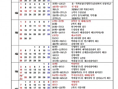 2026.01.29【2026학년도 동북아물류대학원 학사운영계획】신입생 및 재학생은 학사운영계획 일정을 꼭 확인해주시기 바랍니다. ★주요학사일정- 휴·복학신청 2월 2일(월) ~ 13일(금) - 2026년 2월 학위수여식 2월 20일(금) - 1학기 수강신청 2월 23일(월) ~ 27일(금) - 1학기 등록(재학생,복학생,수료생) 2월 23일(월) ~ 27일(금) - 1학기 개강 3월 3일(화) (※ 토요일 수업의 경우 3월 7일(토))★주요행사일정(예정) - 신입생 오리엔테이션 2월 21일(토) 11시 - 신입생 환영 및 개강총회 3월 7일(토) 12시 30분~1시30분