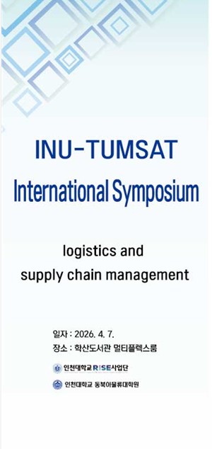 인천대학교 동북아물류대학원 - 도쿄해양과학기술대학교(INU-TUMSAT) 국제 심포지엄 개최 안내 인천대학교 동북아물류대학원은 물류 및 공급망관리(SCM) 분야에서 지역혁신중심 대학지원체계(RISE) 사업과 두뇌한국21(BK21) 사업 등 주요 국가 지원 사업을 기반으로 교육 및 연구 역량을 지속적으로 강화해오고 있습니다.이와 같은 전략적 발전의 일환으로, 인천대학교는 오랜 협력 관계를 유지해 온 도쿄해양과학기술대학교(Tokyo University of Marine Science and Technology, TUMSAT)와 공동으로 국제 심포지엄을 개최합니다. TUMSAT은 해양과학, 운송, 물류 분야에서 일본을 대표하는 대학으로, 양 기관은 해당 분야에서 긴밀한 학술 협력 기반을 구축해 왔습니다.본 심포지엄은 양교 교수진이 최신 연구 성과를 공유하고 교육 및 연구 협력 방안을 모색하는 교류의 장으로서, 공동 교육과정 운영, 공동 연구 추진, 장기적 협력 체계 구축 등에 대한 심도 있는 논의가 이루어질 예정입니다.■ 행사명: INU–TUMSAT 국제 심포지엄 (물류 및 공급망관리)■ 일시: 2026년 4월 7일(화) 15:00–18:00■ 장소: 인천대학교 송도캠퍼스 학산도서관 멀티플렉스룸■ 주최: 인천대학교 물류대학원 / RISE 사업단 / BK21 사업단■ 대상: 교원 및 학부·대학원생 ■ 주요 주제 - SCM에서의 인공지능 및 수리최적화 - 해운 운영 및 공급계약 - 스마트 항만 및 물류 혁신 ■ 발표자 [도쿄해양과학기술대학교(TUMSAT)] 와타나베 다이스케 교수 : 자율주행 트럭을 고려한 일본 물류 네트워크의 전략적 최적화 타노우에 유타 부교수 : Proper Cover를 활용한 Bernstein 부등식과 포트폴리오 VaR 및 TVaR 상한 분석 마츠이 카즈노리 조교수 : ODENet과 ResNet의 보편 근사 성질: 신뢰 가능한 AI를 위한 이론적 기반 [인천대학교(INU)] 송상화 교수(물류대학원장) : AI 기반 최적화: 복잡한 의사결정 문제의 해결, 모델링 및 설명 김우중 조교수 : 스마트 화물 운송 시스템: 기술 동향과 향후 발전 방향 ※ 많은 관심과 참여를 부탁드립니다.