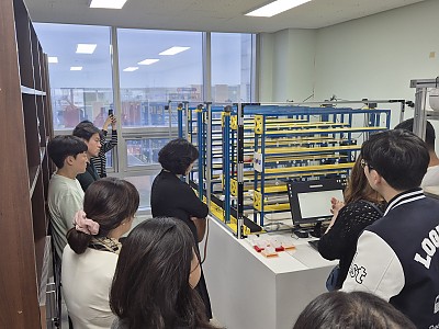 2025.10.22『레고 기반 초소형 물류센터』 스마트물류 실습실 시연 2025년 9월 24일(수), 영종국제물류고등학교에서 인천대학교 스마트물류시스템 혁신연구센터에서 구축한 국내 최초 레고 기반 초소형 물류센터를 방문하였다. 실제 물류 현장의 물류센터를 방불케하는 레고 기반 초소형 물류센터를 통해 학생들은 물류 시설 및 장비의 운영방법, 최적 운영 체계, 알고리즘 등에 대한 실습이 가능하다. 인천대 측은 레고 기반 물류센터를 가동하여 실제 레고가 작동하는 모습을 시연하였다. 향후 인천대학교 스마트물류시스템 혁신연구센터와 영종국제물류고등학교는 다양한 분야에서 협력을 확대하여 인천 디지털물류 선도에 앞장 설 예정이다.