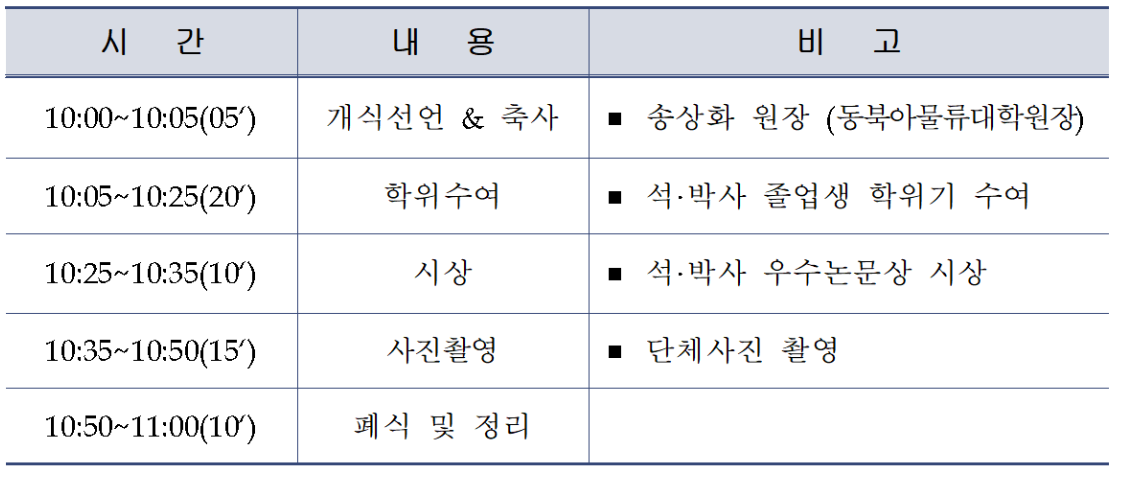 2025년 8월 동북아물류대학원 학위수여식 일정 안내