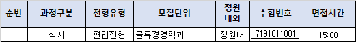 동북아물류대학원 편입학 면접시간을 아래와같이 알려드리오니, 개인별 면접시간 15분 전 대기실에 도착하여 신분확인을 완료하여 주시기 바랍니다.