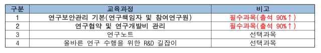 ※ 연구비부정사용방지 교육은 최초 1회 이상만 수료하시면 됩니다