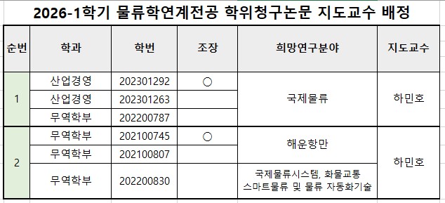2026학년도 1학기 물류연계전공 졸업논문 지도교수 배정 및 졸업논문 제출 안내