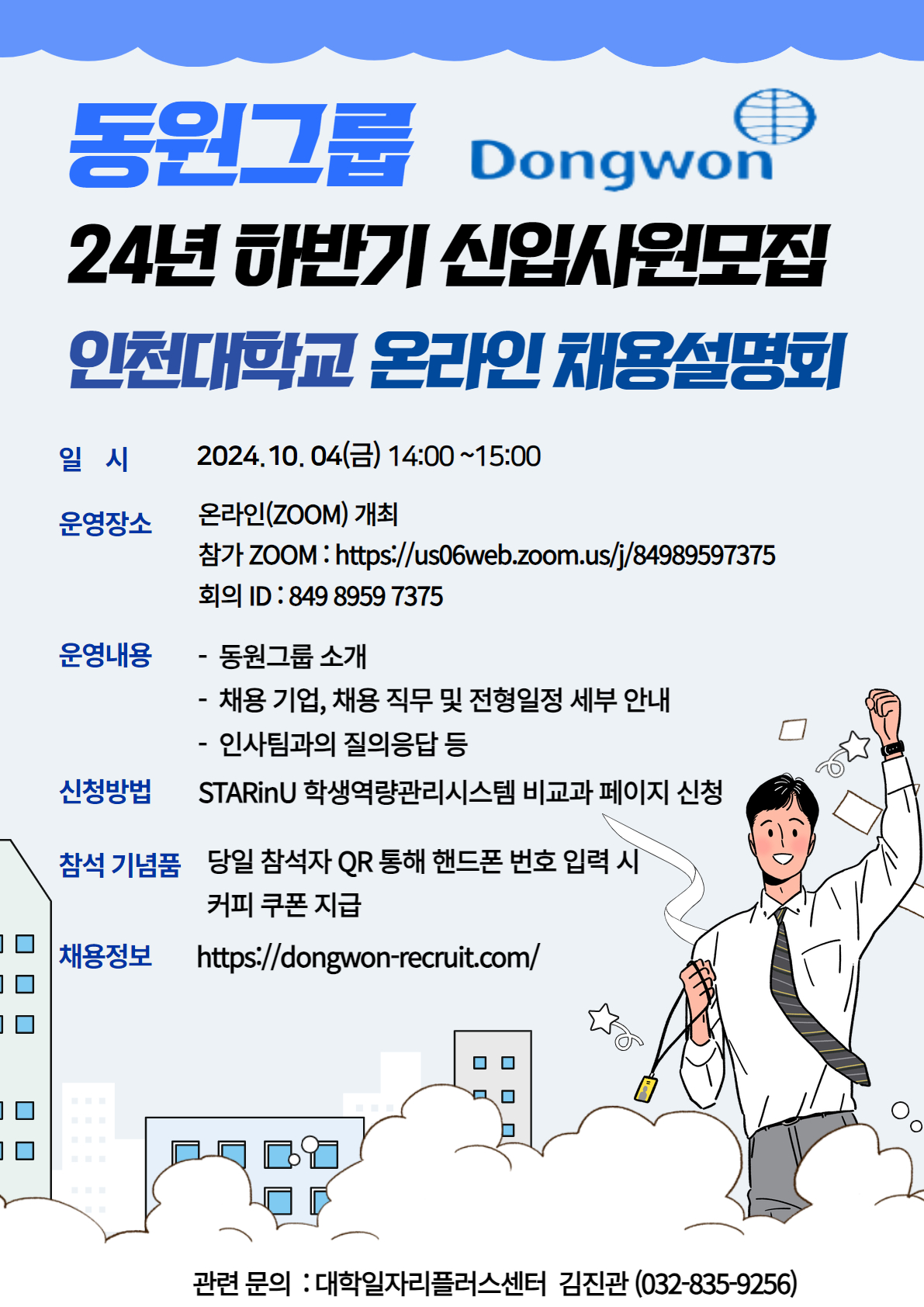 [동원]동원그룹 24년 하반기 신입사원모집 인천대학교 온라인 채용설명회 홍보