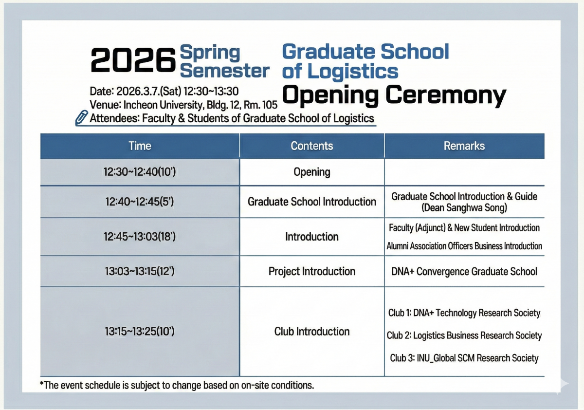 The Graduate School of Logistics will hold an Opening Ceremony for the Spring 2026 semester.