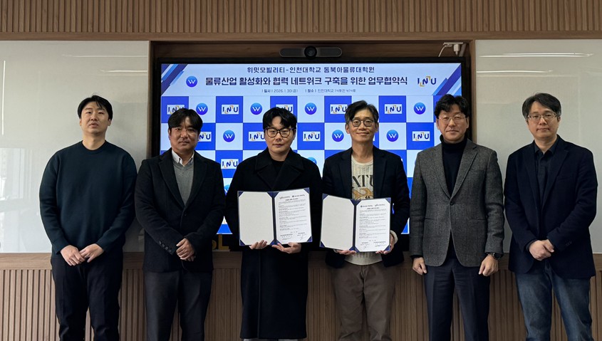 인천대학교 동북아물류대학원(원장 송상화)은 지난 30일, 위밋모빌리티(대표이사 강귀선)와 AI 기반 스마트 물류 활용 및 기술 발전을 위한 산학협력 양해각서(MOU)를 체결했다고 밝혔다. 이번 협약을 통해 양 기관은 최신 물류 기술 공동 연구, 맞춤형 인재 양성을 위한 교육 및 인턴십 프로그램 운영, 최신 기술 동향 공유 및 세미나 개최 등 다양한 협력 활동을 추진할 계획이다.