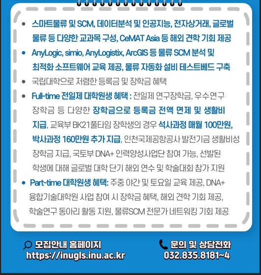 ♧주소 : 인천광역시 연수구 아카데미로119 인천대학교 14호관 409호 동북아물류대학원 교학행정실