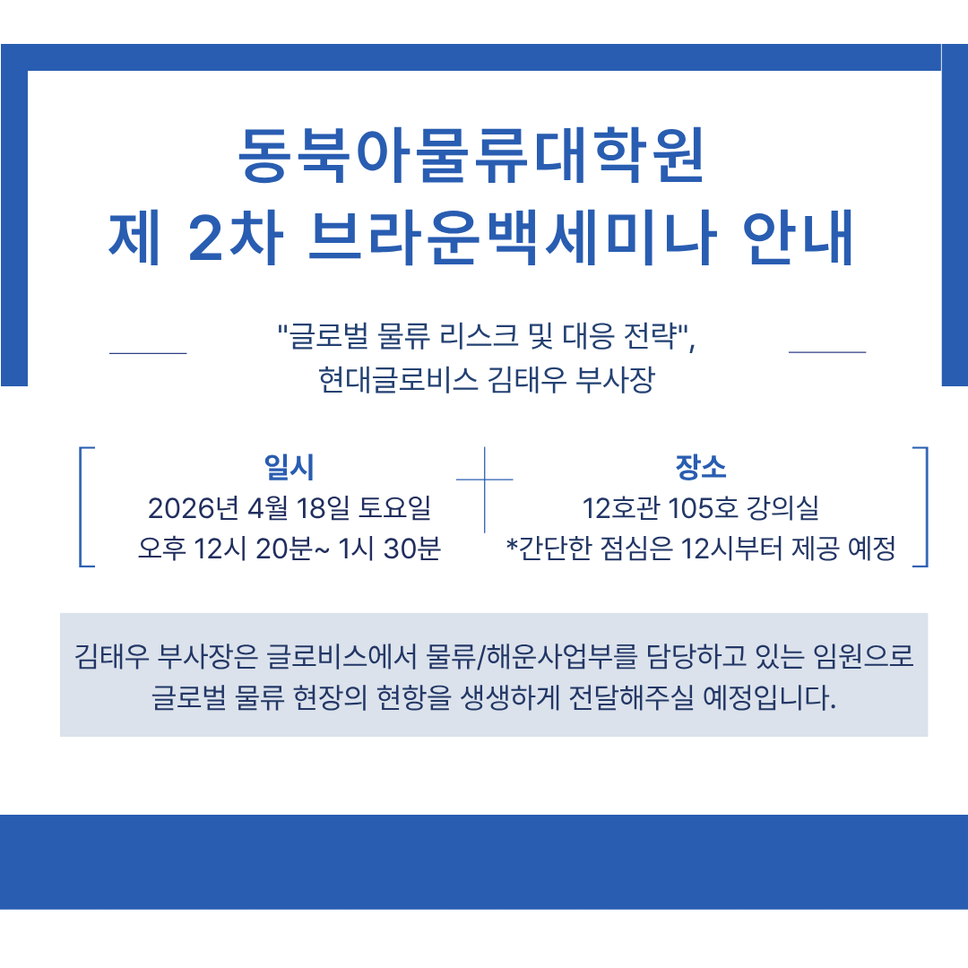 제2회 브라운백세미나가 개최됩니다. 재학생분들의 많은 참석 바랍니다.