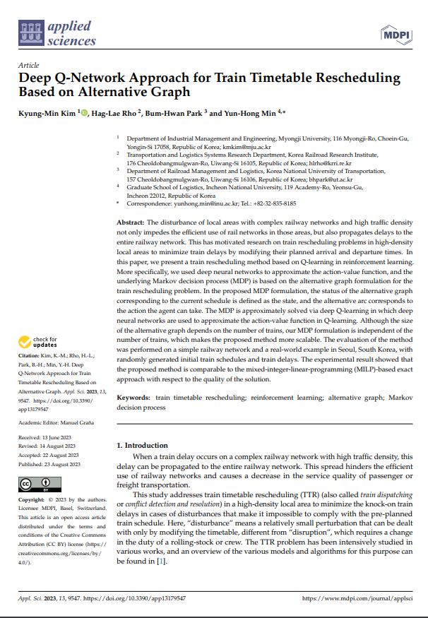 Deep Q-Network Approach for Train Timetable Rescheduling Based on Alternative Graph