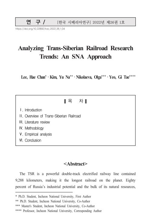 SNA를 활용한 시베리아횡단철도의 연구동향 분석에 관한 연구 작성자 관리자 작성일 2023-02-23 조회수 82 저자 이해찬,김유나,니콜라예바올가,여기태 학술지명 한국시베리아연구 게재년도 2022 링크 https://kiss.kstudy.com/thesis/thesis-view.asp?key=3939495