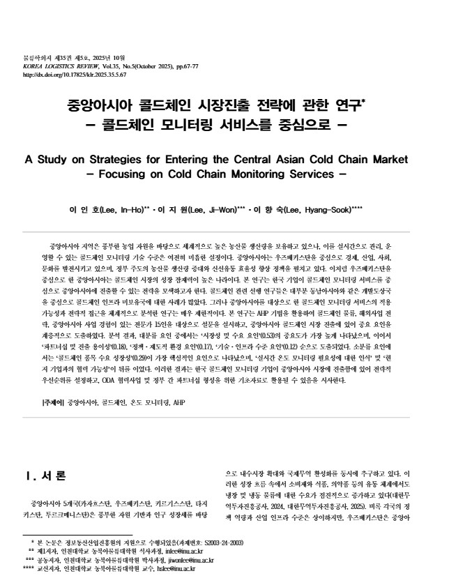 중앙아시아 콜드체인 시장진출 전략에 관한 연구 - 콜드체인 모니터링 서비스를 중심으로 -