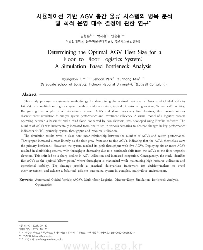 시뮬레이션 기반 AGV 층간 물류 시스템의 병목 분석 및 최적 운영 대수 결정에 관한 연구