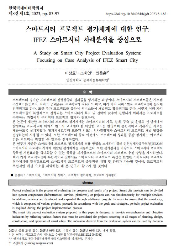 스마트시티 프로젝트 평가체계에 대한 연구: IFEZ 스마트시티 사례분석을 중심으로 작성자 관리자 작성일 2023-09-08 조회수 452 저자 이상호, 조희연,민윤홍 학술지명 한국빅데이터학회지 게재년도 2023 링크 https://kiss.kstudy.com/Detail/Ar?key=4032325
