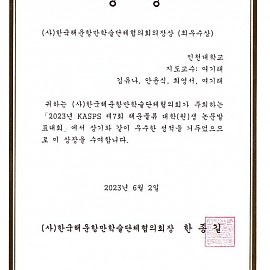 【2023년 한국ITS학회 춘계학술대회 우수논문상 수상】 논 제 : 초효율성 모형을 사용한 아시아 상위 20개 항만의 경쟁력 분석 저 자 : (박사과정) 진가영지도교수 : 이향숙